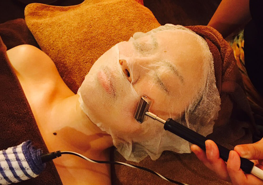 お化粧を落とし、イオン導入やパックの準備をいたします。